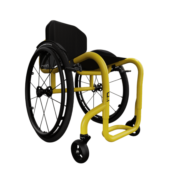La silla de ruedas activa Aria 1.0 es un modelo ligero, con un chasis fijo de aluminio soldado a medida, diseñado para ofrecer máxima eficiencia y confort. Su respaldo postural Aria, integrado en la versión estándar, proporciona un soporte ergonómico superior. El chasis presenta un diseño frontal cónico que mejora la contención de las piernas del usuario, mientras que la ergonomía del asiento en la parte posterior favorece la estabilidad de la pelvis y facilita un impulso más eficiente durante el desplazamiento.